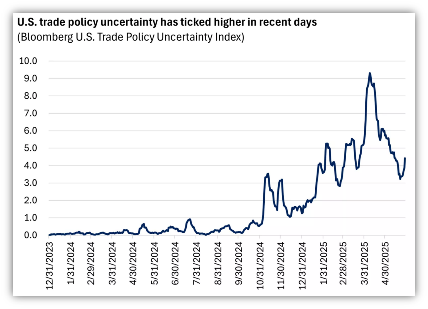 Investors will have to wait to get more clarity about tariffs, ahead of the July 9 end of the 90-day pause on Canadian and other trading partner tariff rates, as well as the August 12 end of the 90-day pause with China. So far, U.S. and Canadian companies have been able to navigate tariff uncertainty and contain prices, partially due to the inventories they built ahead of tariff-led price increases. The month of May was positive for the S&P 500 index and the S&P/TSX composite index (TSX). And, historically, a strong May has boded well for the forward 12-month market performance but only time will tell. (3)